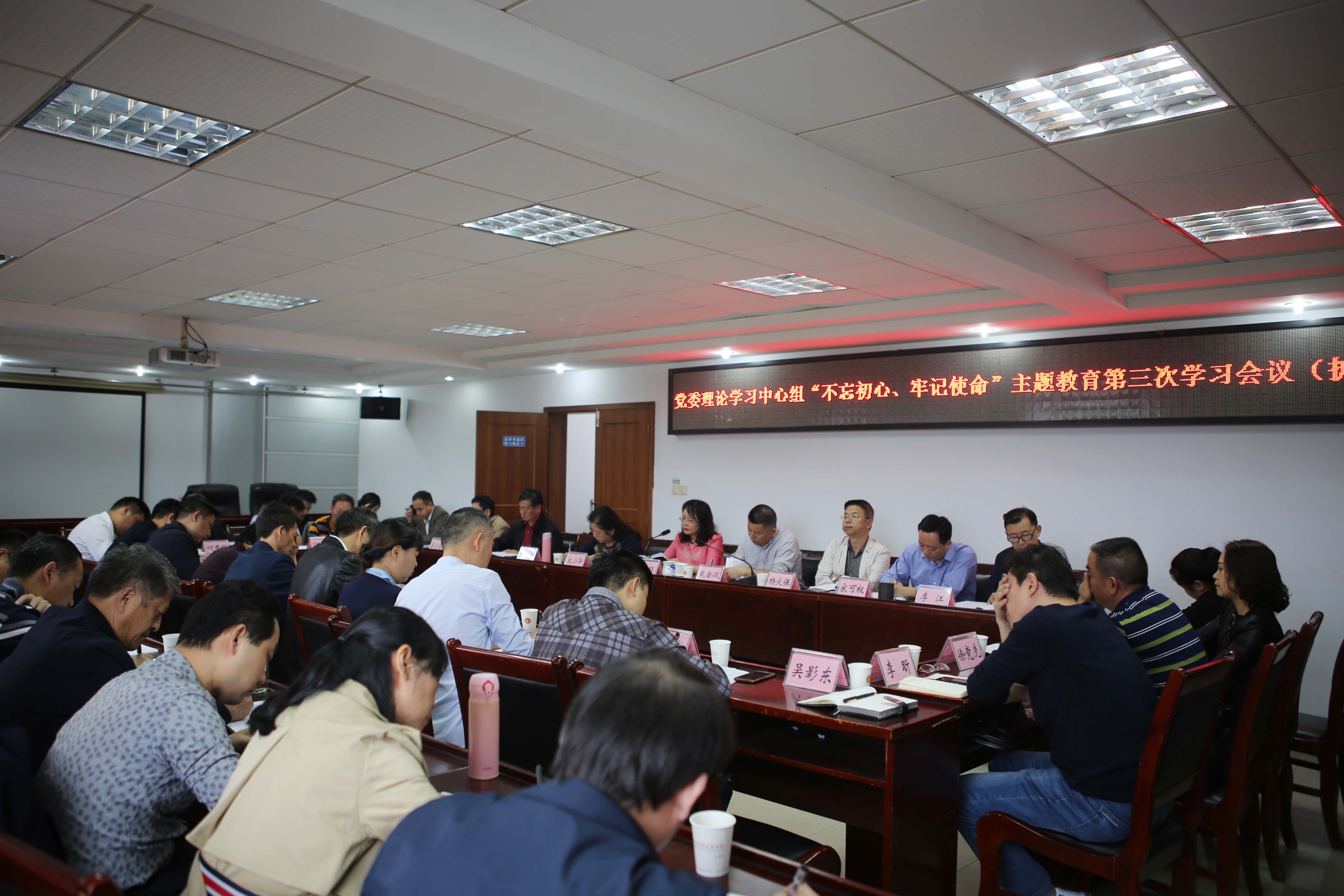 10月11日下午,学校在行政楼四楼会议室召开党委理论学习中心组“不忘初心、牢记使命”主题教育第三次学习会议(扩大),党委书记李红传达学习省委书记杜家毫10月8日党课精神,常务副校长戴金波主持,全体党委班子成员、正副职中层干部参加会议。