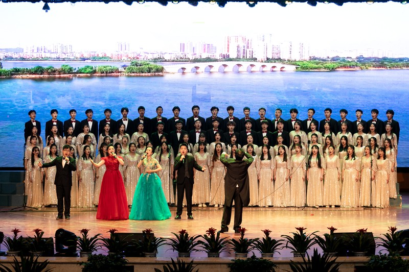 红音袅袅,乐曲悠扬,壮丽的山河,可爱的中国,沸腾的青春和师生们的张张笑脸……全场大合唱《光荣啊!中国共青团》的激昂旋律将全体观众的思绪拉回100年前。